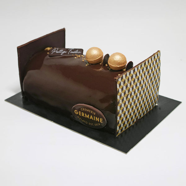 ±120g gelato per persoon (1,5 bol) in bûchevorm.